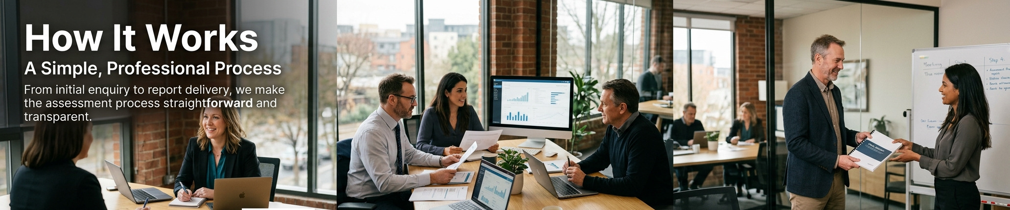 Contact us by phone, email, or through our website with your assessment requirements. We respond promptly to all enquiries and provide an initial overview of how we can help.